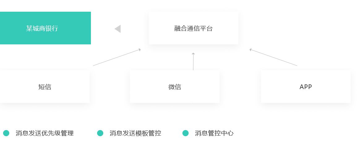 - 银行需要发送消息的各大业务系统与ICC按API标准对接,由ICC再向短信、微信、APP发送消息,减轻业务系统的对接压力及复杂度